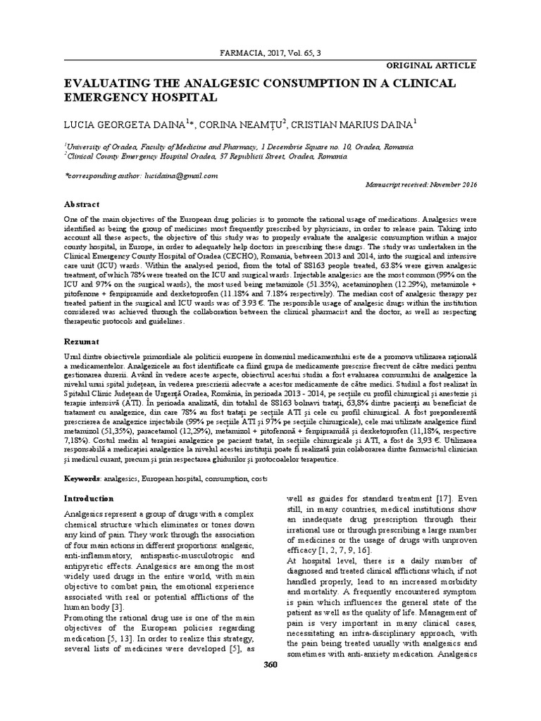 Evaluating The Analgesic Consumption In A Clinical Emergency