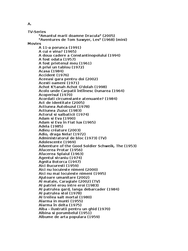 Unicat Lista Cu Toate Filmele Romanesti