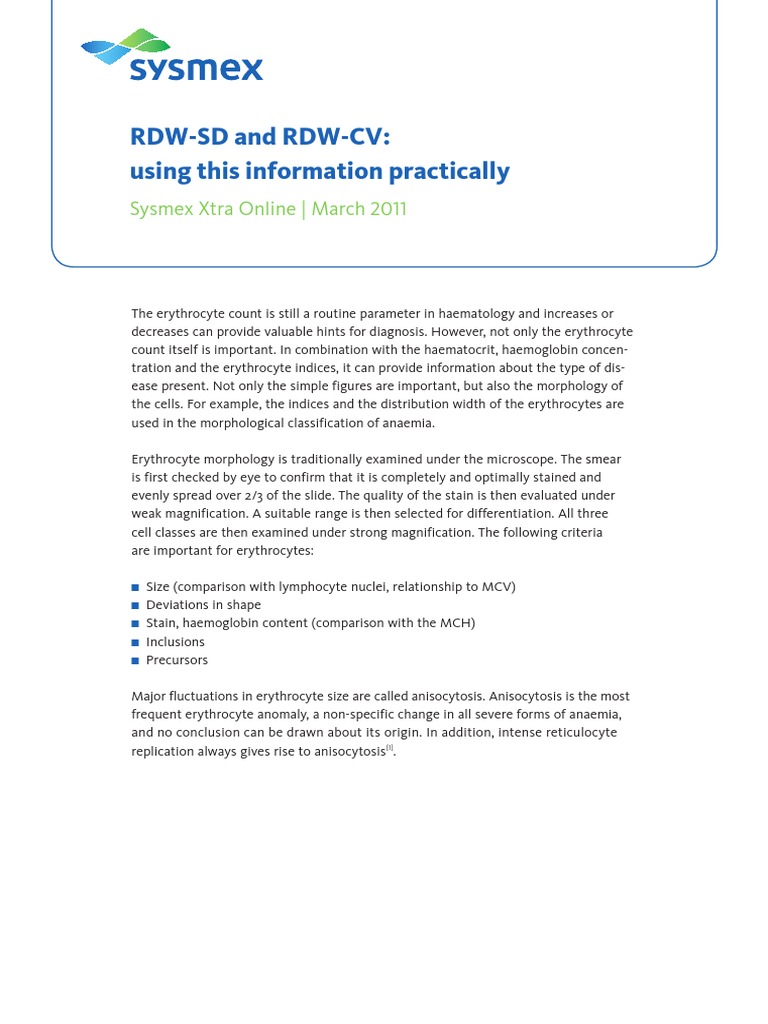 Rdw Cv Red Cell Distribution Width Rdw Significance Of Low