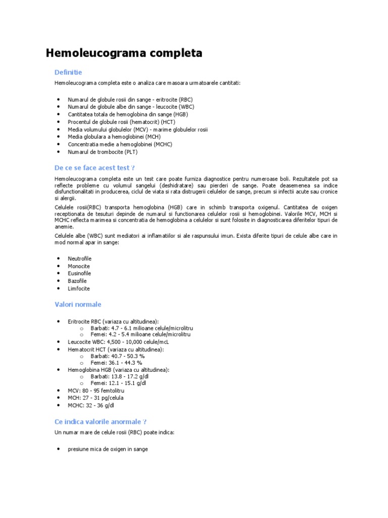 Interpretarea Hemoleucogramei Analize Hematologie Analize