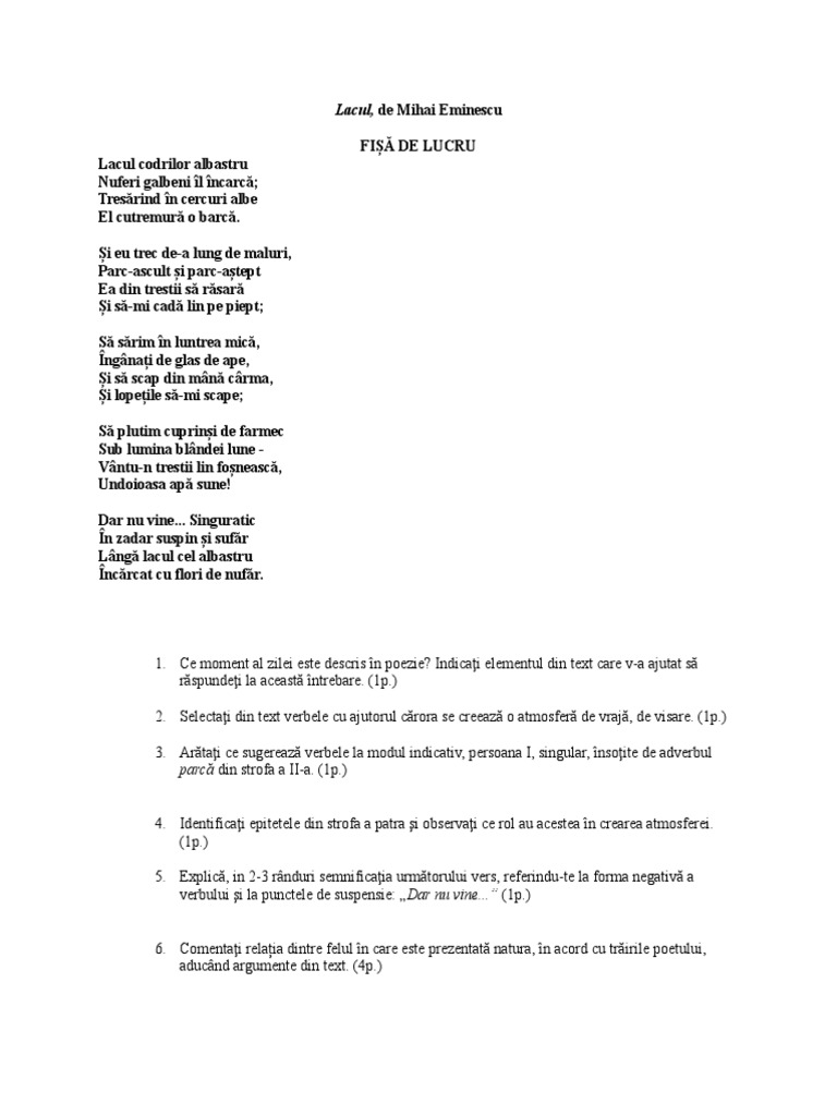 Subiectul Ii Semnele De Punctuatie Figuri De Stil