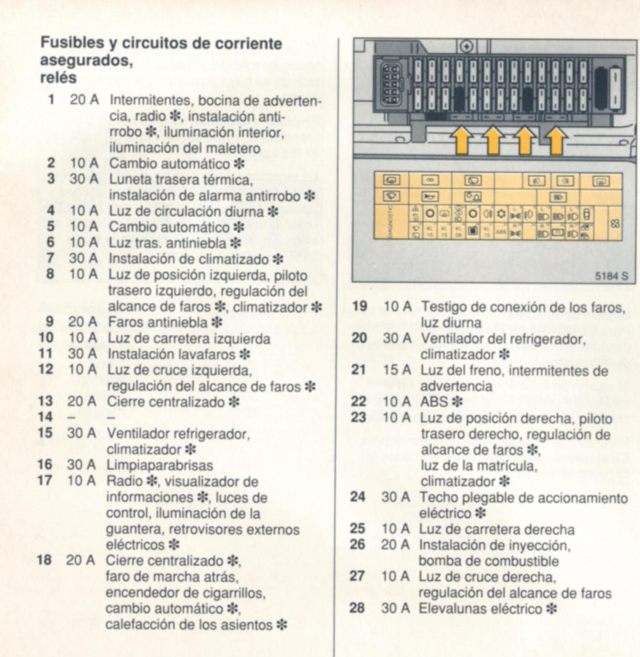 Esquema Fusibles Opel Zafira 2001