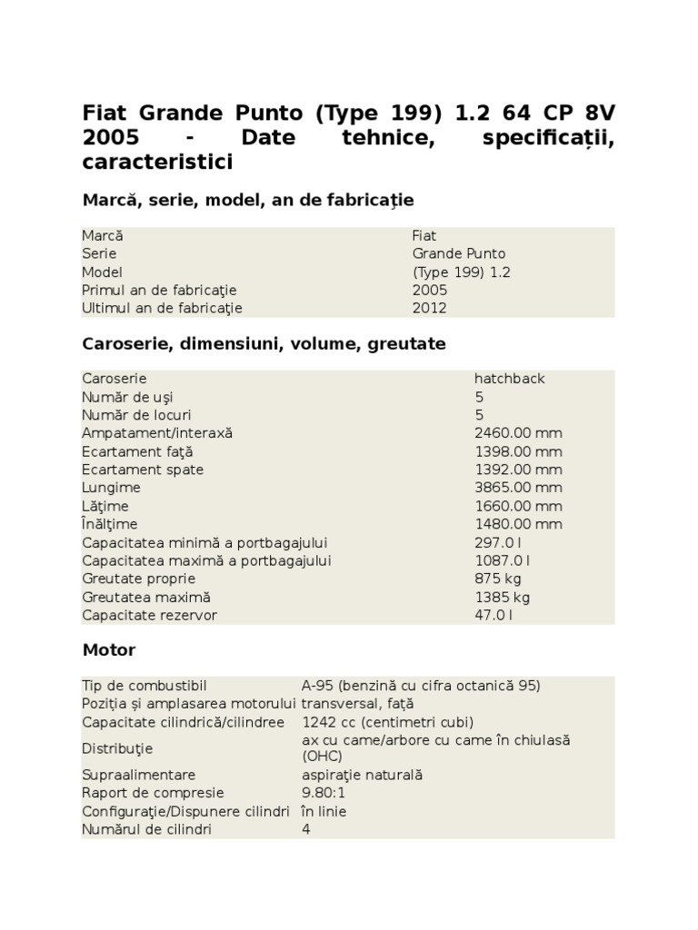 Fiat Grande Punto Hatchback Date Tehnice 2006 2010