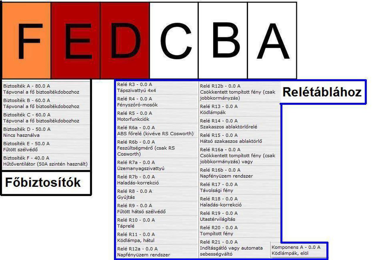 Biztositek Tabla Ford Focus 1998 2005 Benzines