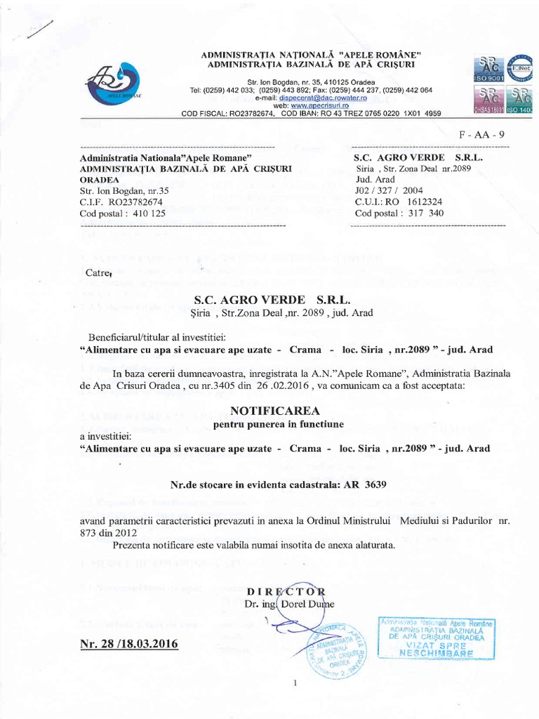Notificare Apele Romane
