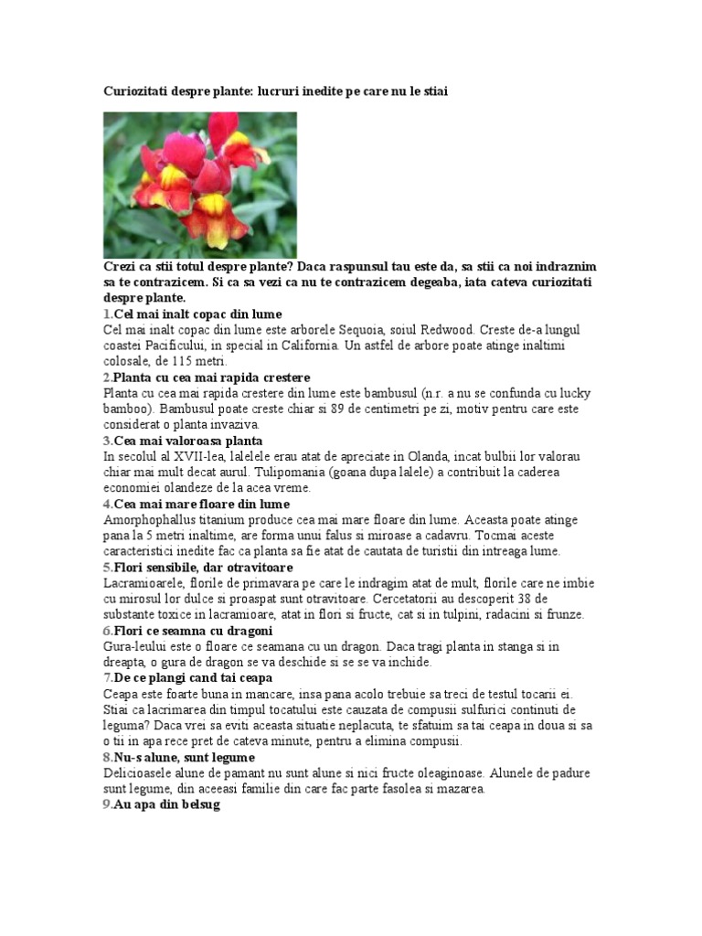 Curiozitati Despre Plante