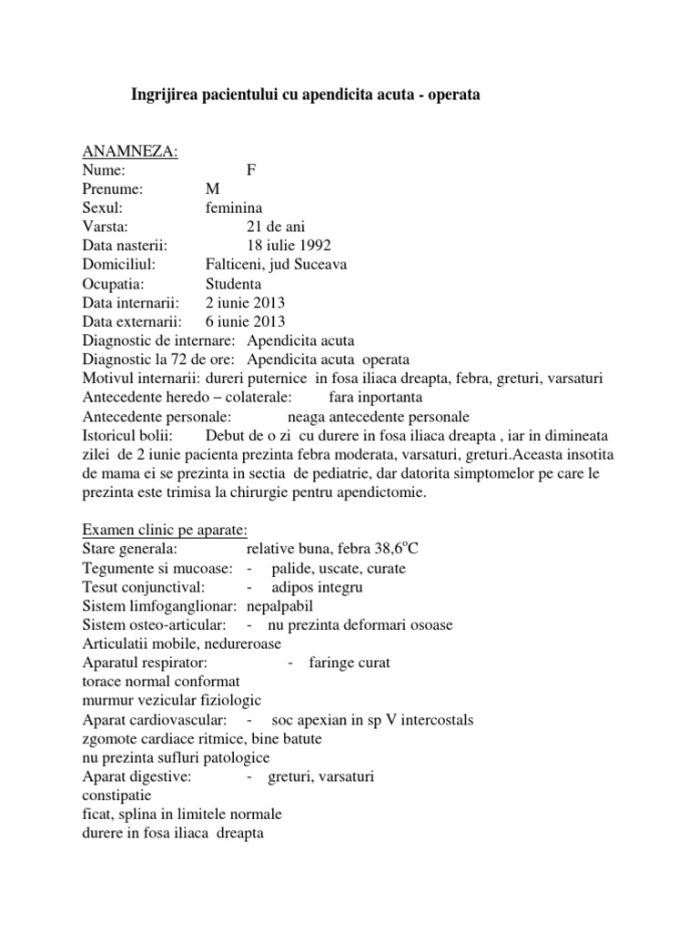 Chirurgie Apendicita Acuta Studiu De Caz